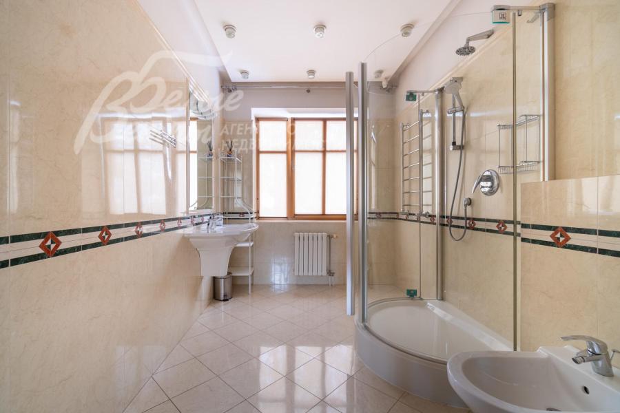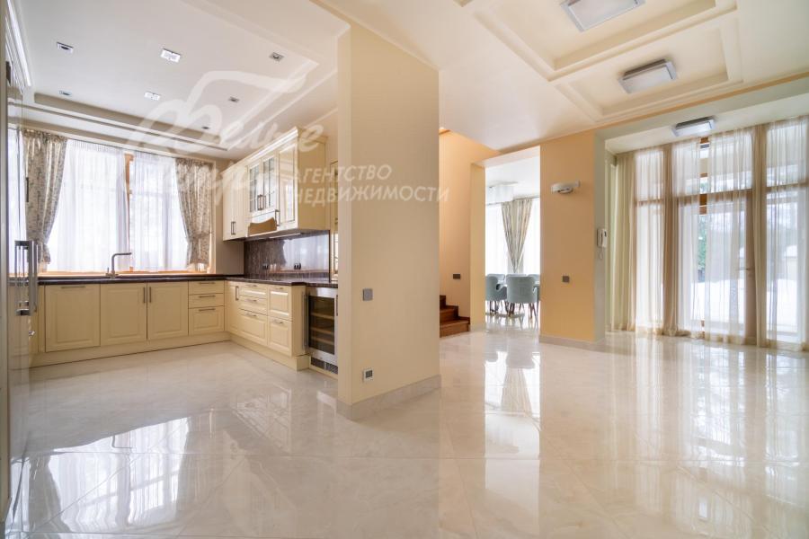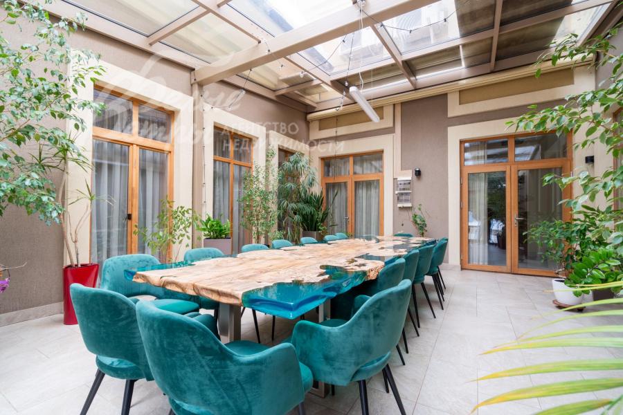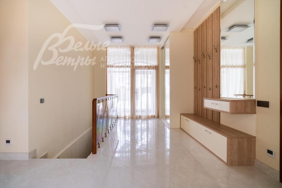 Мебель, оборудование: Дом полностью меблирован: в столовой обеденный стол на 8 персон со столешницей из кварцевого агломерата с дорогими мягкими стульями/креслами, в гостиной основного дома и блока для персонала, а также в одной из гостевых спален - мягкие гарнитуры с обивкой из велюра, в спальнях двуспальные кровати, тумбы, комоды, гардеробные, оборудованные новыми современными системами хранения. В закрытой террасе на первом этаже большой стол 3.93х1.15м на 16 персон со столешницей из эпоксидной смолы, на террасе второго этажа и в спа-зоне стильная плетеная мебель. В основной кухне П-образный кухонный гарнитур с большой рабочей поверхностью, глянцевыми фасадами бежевого цвета и всей необходимой встроенной техникой: два однокамерных холодильника в цвет гарнитура, посудомоечная машина (60 см), электрическая варочная панель, духовой шкаф, микроволновая печь, вытяжка.