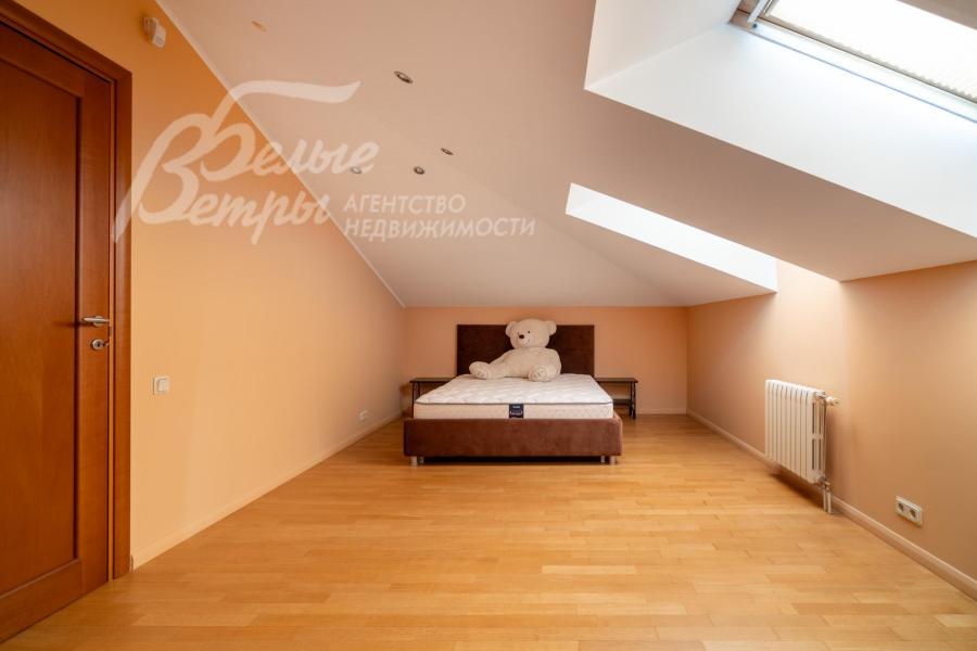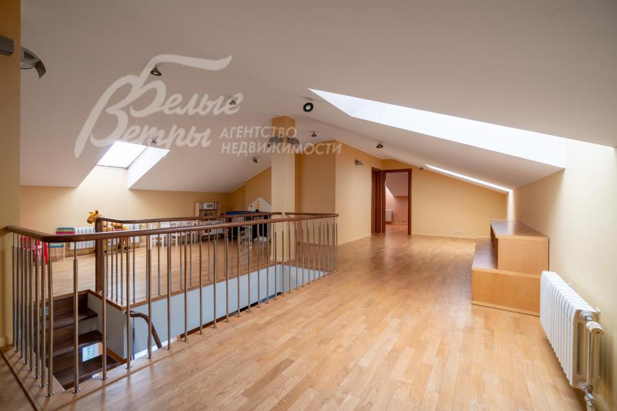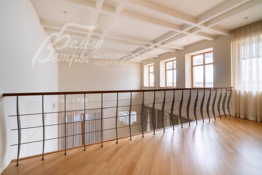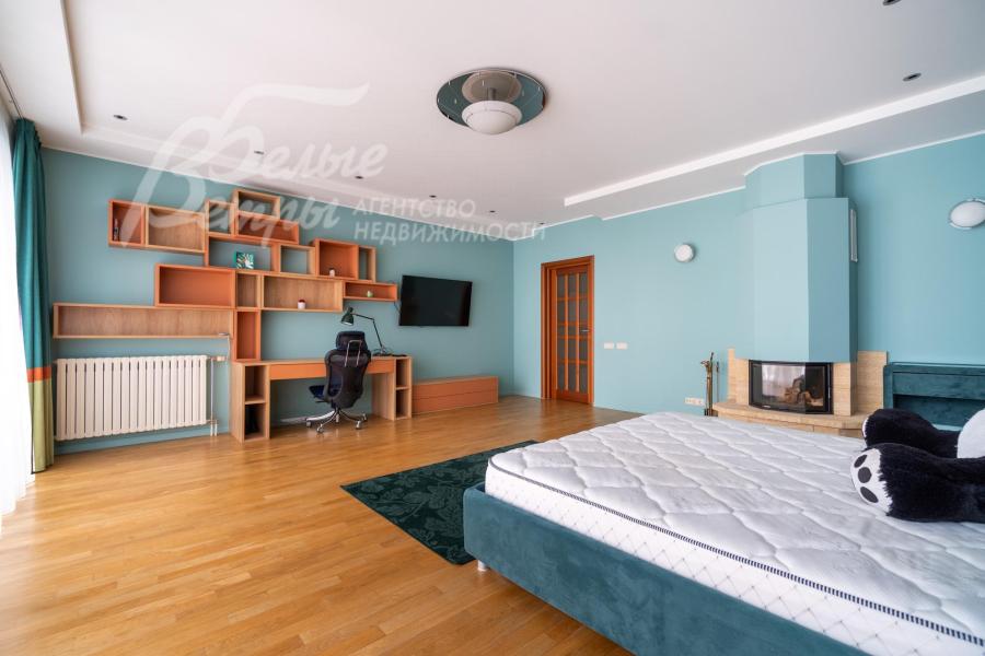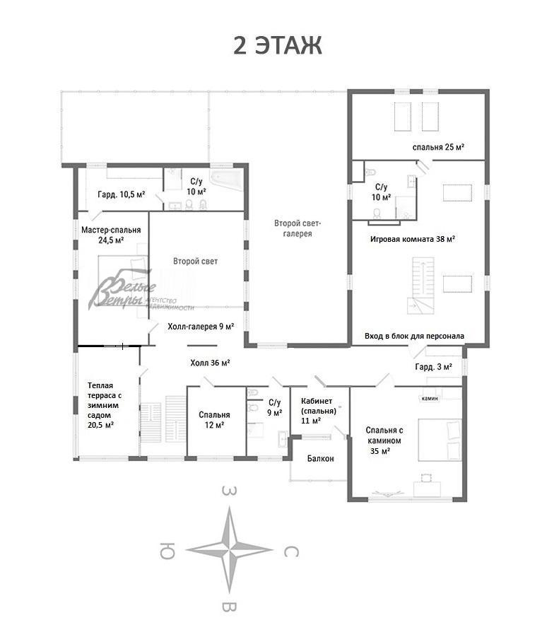 2-ой этаж: Основной дом: теплая терраса с зимним садом 20.5 кв.м, мастер-блок: спальня 24.5 кв.м с гардеробной 10.5 кв.м и санузлом с ванной и душевой 10 кв.м, холл/галерея 9 кв.м, холл 36 кв.м, спальня 12 кв.м, санузел с душевой 9 кв.м, кабинет (спальня) 11 кв.м с балконом, спальня с камином и панорамными окнами 35 кв.м, гардеробная 3 кв.м;