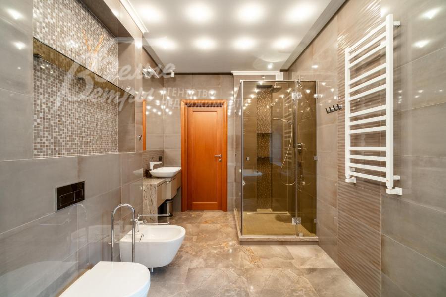 В блоке для персонала также полностью оборудованная кухня со всей техникой (холодильник, морозильная камера, варочная панель, духовой шкаф, посудомоечная машина). Стиральная и сушильная машины, большие современные телевизоры в гостиной, мастер-блоке, блоке для персонала. Во всех помещениях - карнизы, тюль, шторы, в т.ч. блэкаут.