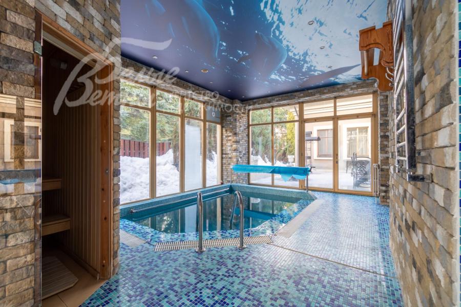 В аренду современный стильный дом 700 кв.м с бассейном и большой площадью остекления в элитном обжитом коттеджном поселке Чароит, прилегающем к санаторию УДП Ватутинки. Дом имеет два автономных блока, рассчитанных на проживание большой семьи из двух поколений либо с большим штатом персонала. Функциональная планировка включает в себя 9 спален и 6 санузлов, просторную гостиную со вторым светом, отдельные помещения кухни и столовой, игровые, зону спа с бассейном и три террасы для летнего и круглогодичного отдыха. Прилегающая к поселку территория санатория находится в заповедном лесном массиве на берегу реки Десна и имеет большую прогулочную зону, бассейны, сауны, рестораны, спортивно-игровой зал, медпункт и др. В шаговой доступности развитая городская инфраструктура поселков Новые Ватутинки, Ватутинки и г.Троицк (школы, детские сады, поликлиника, супермаркеты и др.).
