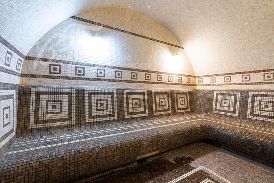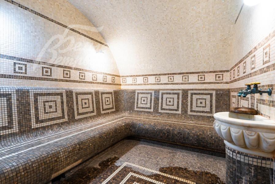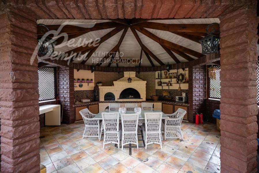 Дополнительные строения: - Гостевой дом 200 кв.м: на 1 этаже - СПА зона с мебелью из натурального ротанга, плиткой Версаче и мерцающим бассейном, хаммамом и душевой с с/у, кухня. На 2 этаже – три спальни и с/у. С балкона можно насладиться красивым видом на живописный пруд и сад.