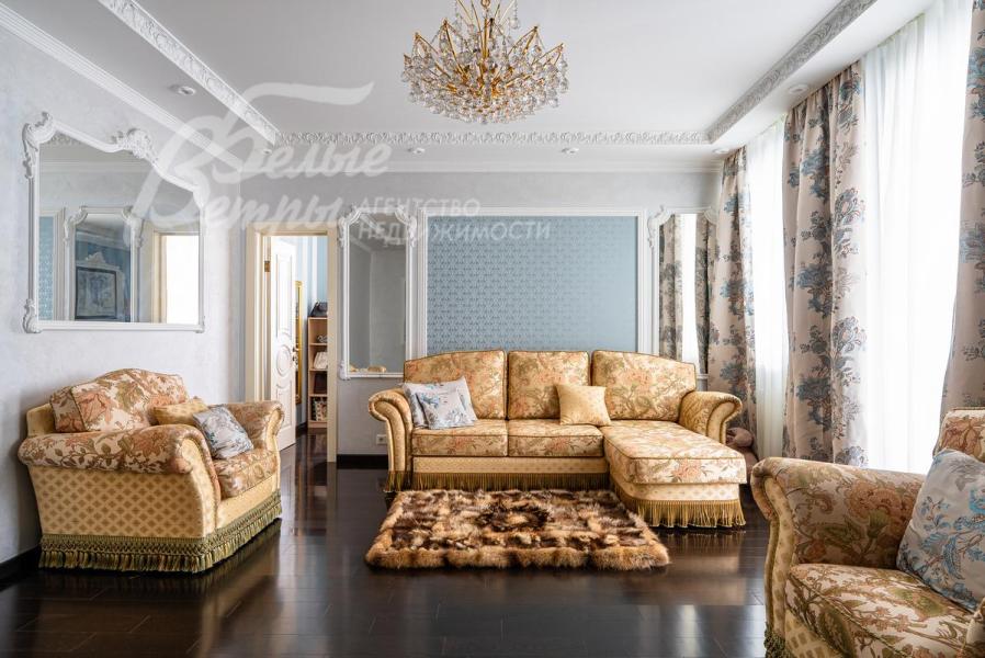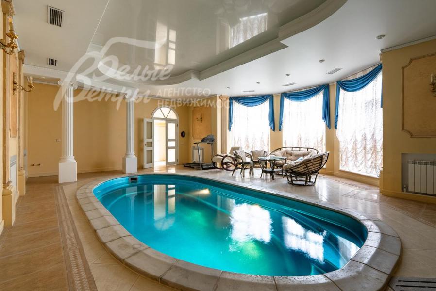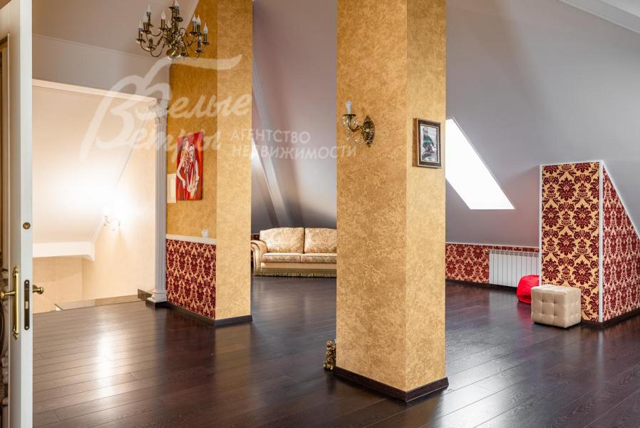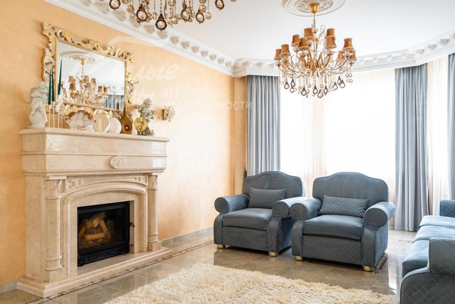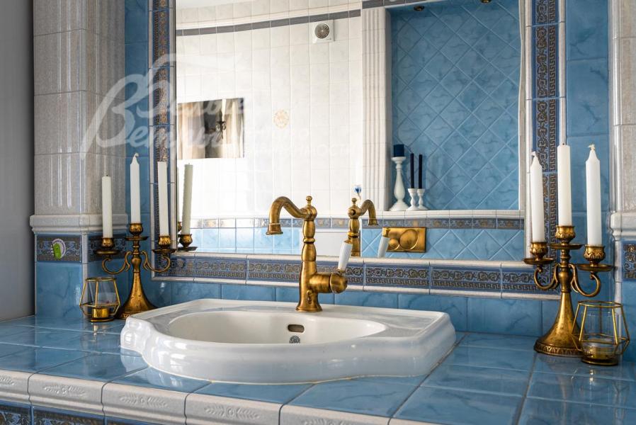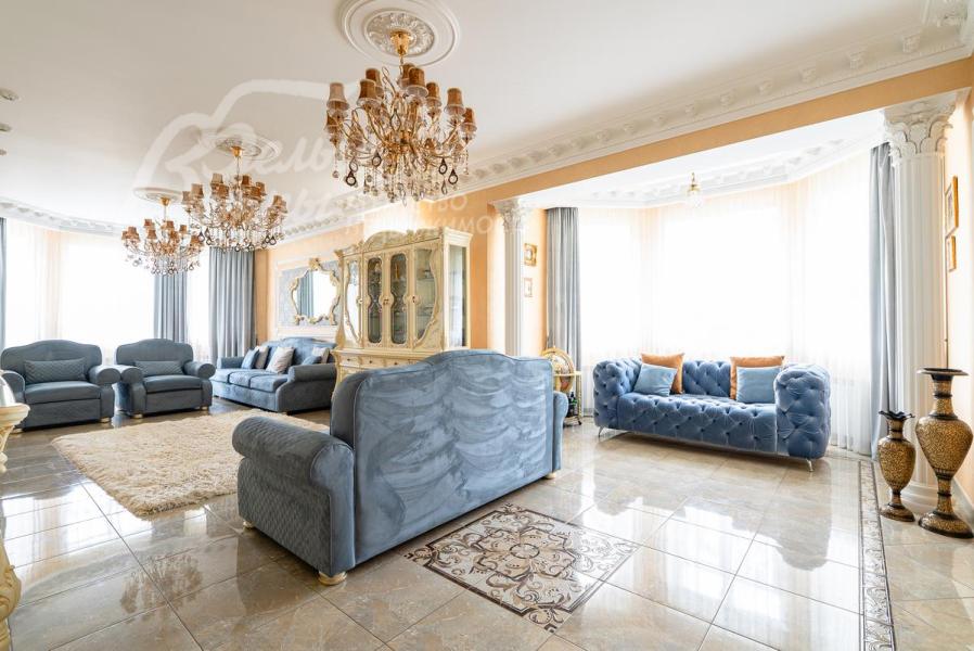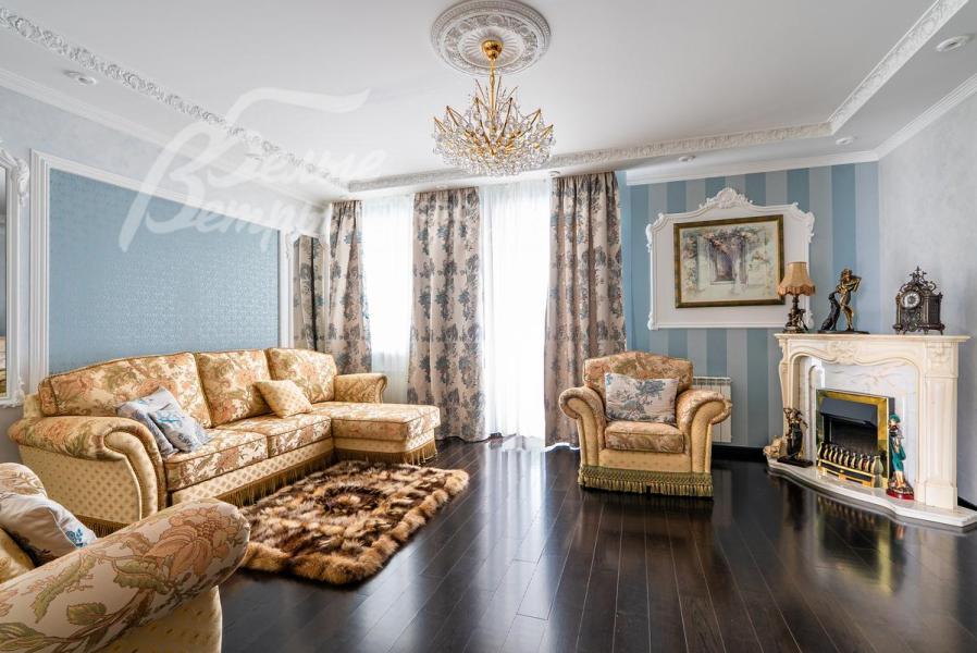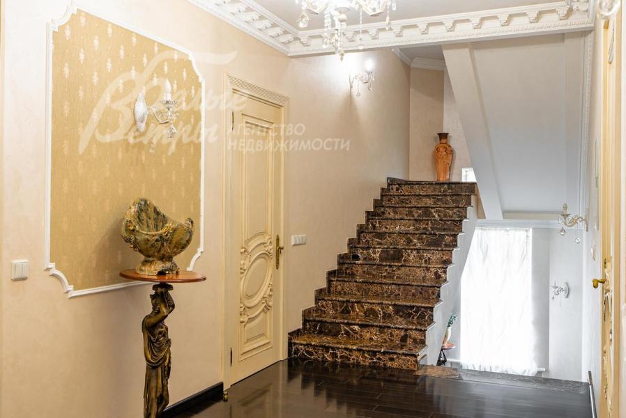 Описание внутренней отделки: Дом в классическом стиле построен по индивидуальному проекту с эркерами и балконом. Стены покрашены венецианской штукатуркой. Гостиную украшает натуральная лепнина ручной работы в классическом стиле. В доме полы с подогревом, выложенные паркетом и плиткой испанской марки Constanza. Коллекционные шторы из бархата и шелка. Деревянные барочные двери с резьбой ручной работы. Мраморная лестница.