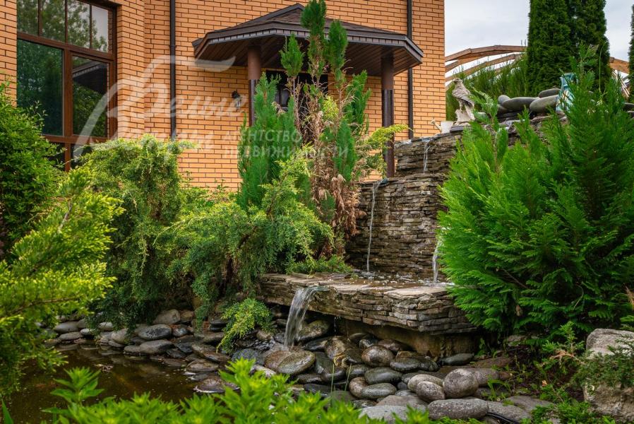 Благоустройство участка: выполнен профессиональный ландшафтный дизайн: ухоженный газон украшает пруд с каскадным водопадом и альпийской горкой. Посажены взрослые туи, голубые ели, горная сосна, сирень, черемуха, плодовые деревья, кустарники, розарий и французский огород. Участок дренирован. Дорожки выложены брусчаткой. Забор с автоматическими откатными воротами.