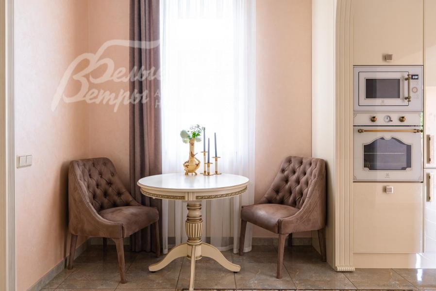 Мебель, оборудование: Кухня - столовая полностью укомплектована встроенной техникой Eletrolux в ретро стиле, гостиную украшает мраморный камин. Кровати, диваны, кресла известных брендов. Сантехника премиальных марок (Migliore, Poolspa). Освещение – дорогие итальянские люстры Swarovski.