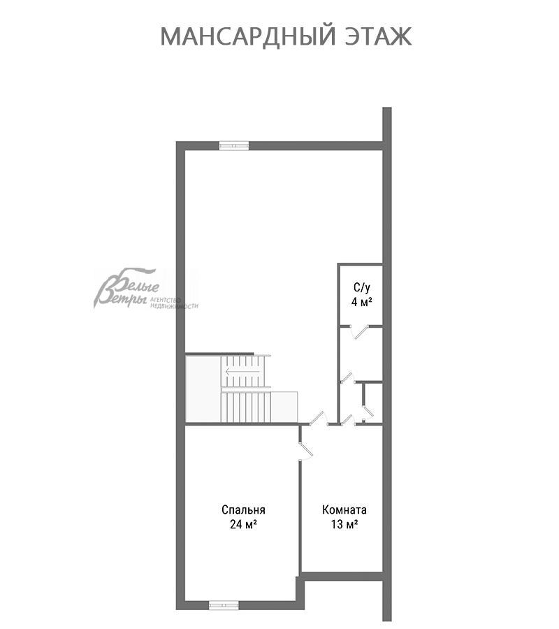 3-ий этаж: мансардный этаж: спальня 24 кв.м, комната 13 кв.м, санузел 4 кв.м