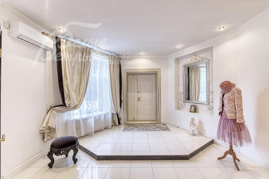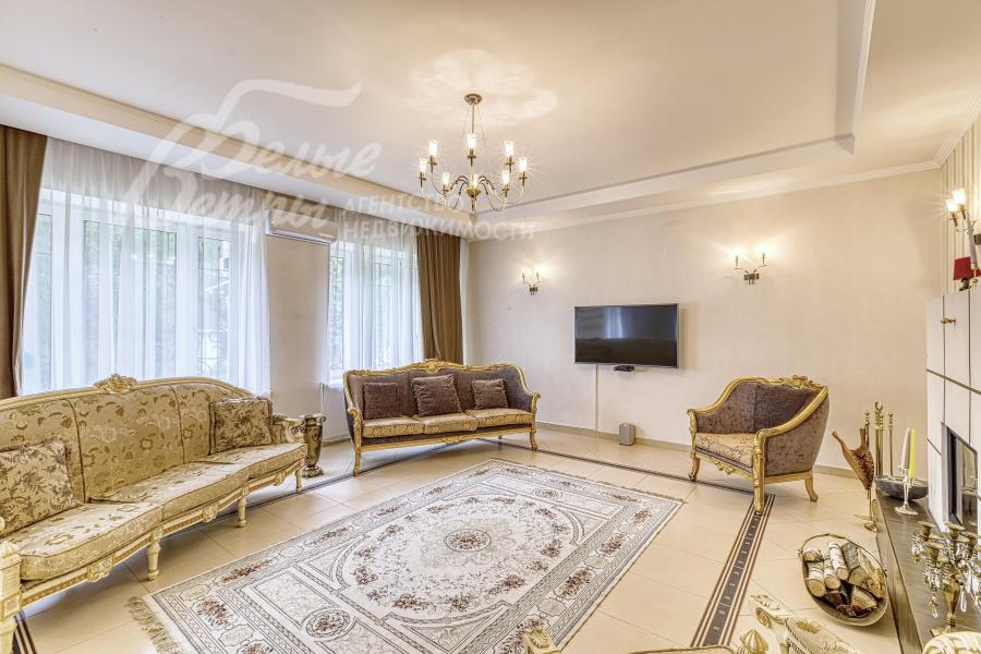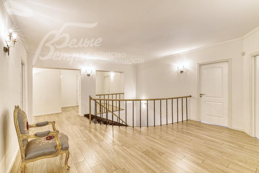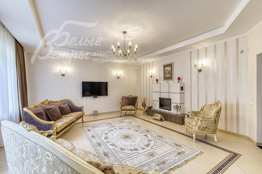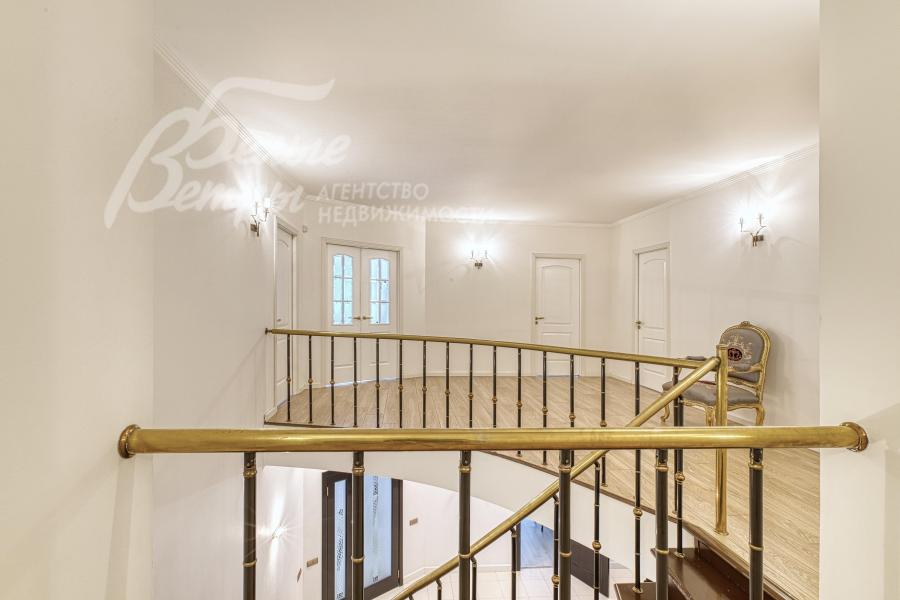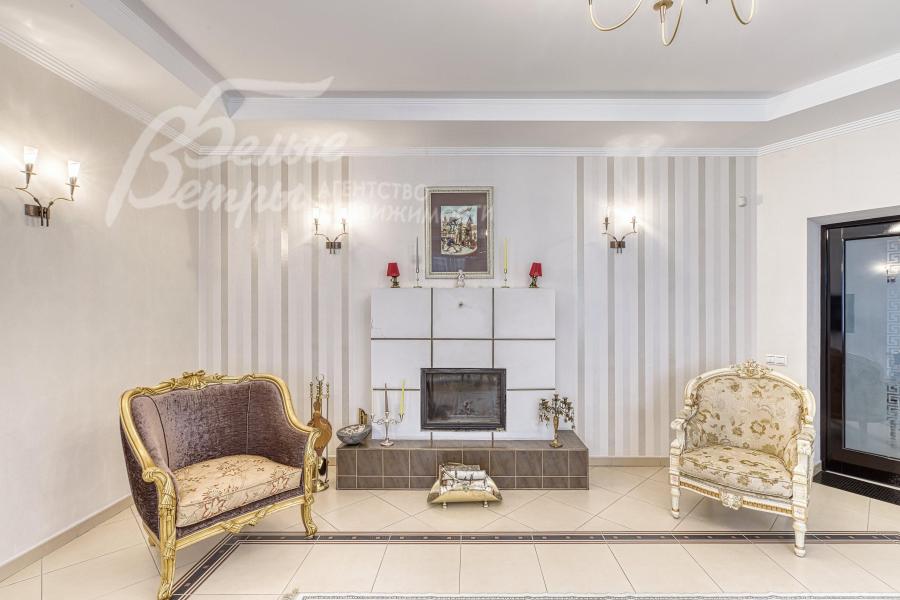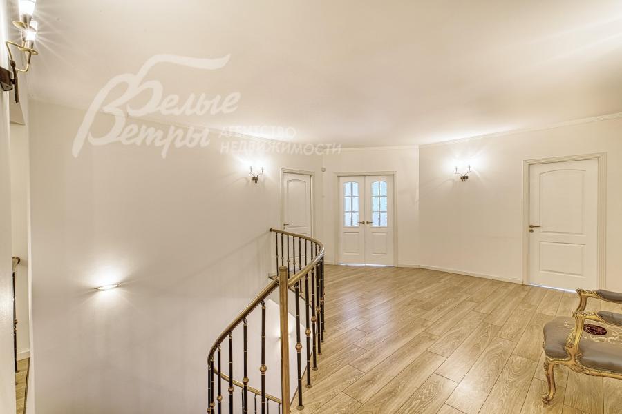 Описание внутренней отделки: выполнена отделка под ключ, материалы – премиальные, испанского и итальянского производства. На стенах поклеены обои, на полу 1-го этажа - плитка, на полу 2-го этажа - паркетная доска и штучный паркет. Потолки – многоуровневые со встроенным освещением. Установлены межкомнатные двери, изготовленные по индивидуальному заказу, из массива дуба с лаковым покрытием, пластиковые подоконники, кованые решетки на всех окнах. В санузлах – тёплые полы. На второй этаж ведёт железобетонная лестница со ступенями, отделанными дубом