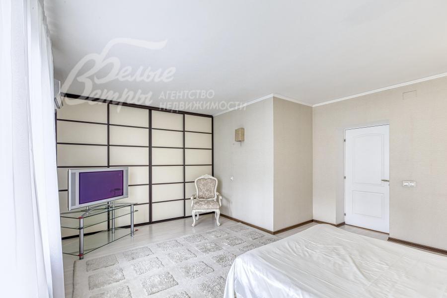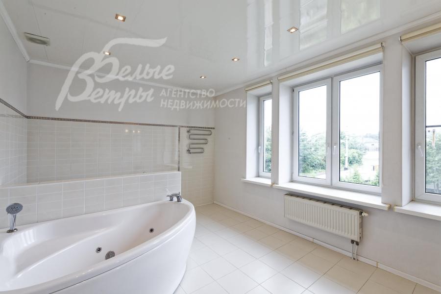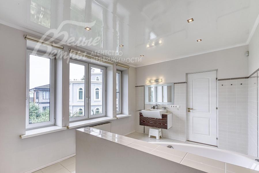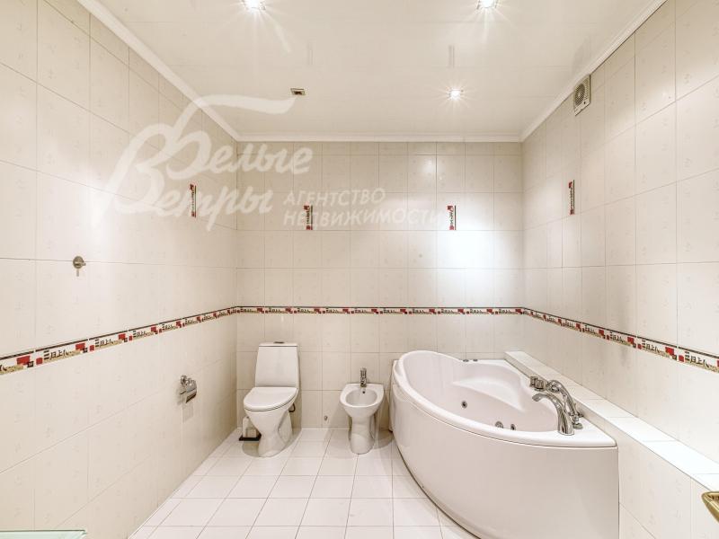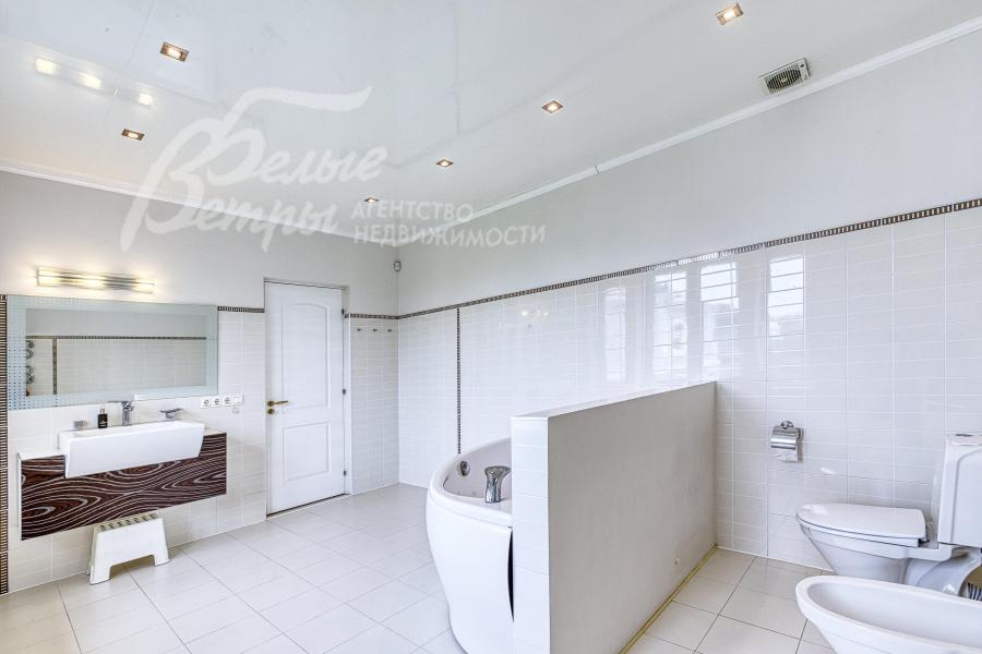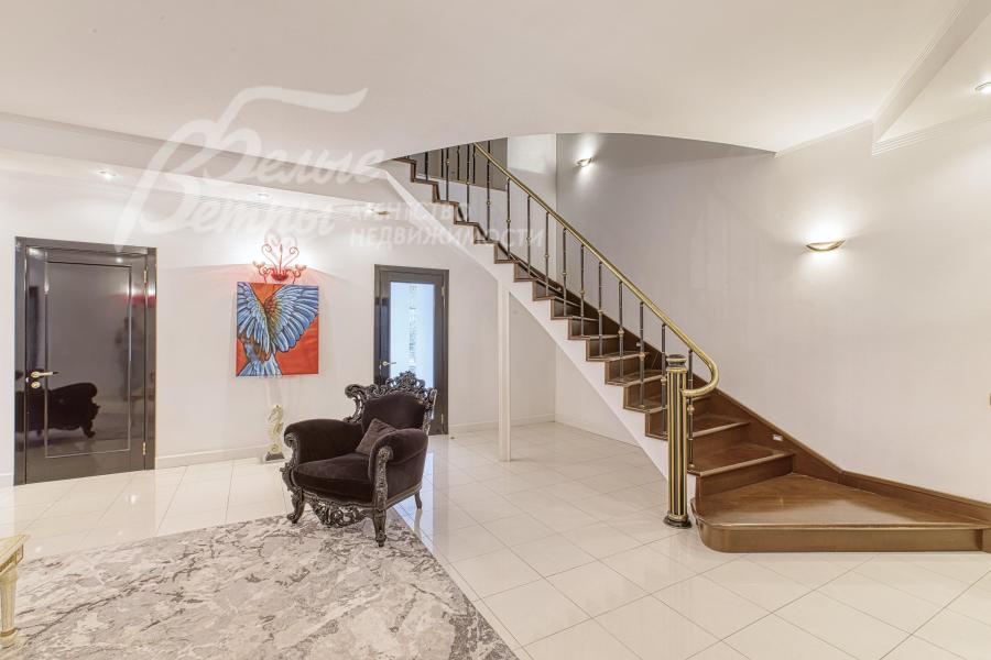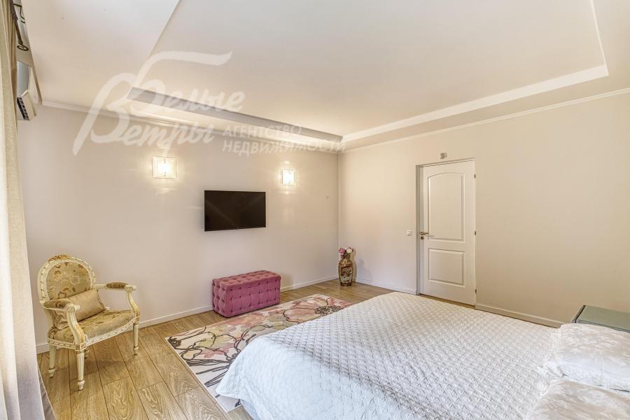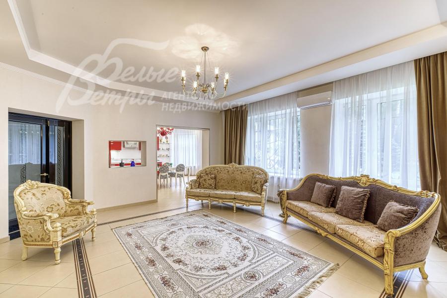 Описание внутренней отделки: выполнена отделка под ключ, материалы – премиальные, испанского и итальянского производства. На стенах поклеены обои, на полу 1-го этажа - плитка, на полу 2-го этажа - паркетная доска и штучный паркет. Потолки – многоуровневые со встроенным освещением. Установлены межкомнатные двери, изготовленные по индивидуальному заказу, из массива дуба с лаковым покрытием, пластиковые подоконники, кованые решетки на всех окнах. В санузлах – тёплые полы. На второй этаж ведёт железобетонная лестница со ступенями, отделанными дубом