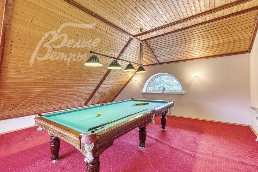 Элегантный меблированный кирпичный дом в стиле фьюжн со множеством зон для полноценного отдыха и развлечений. В доме есть бассейн, джакузи, ИК-сауна, фитобочка, бильярдная, большая детская игровая. В интерьере – высокие потолки с многоуровневым освещением и европейские отделочные материалы, дополненные изящной мебелью. Дом стоит на участке, граничащем с лесом. Ландшафт участка объединяет классическую парковую концепцию и природную лесную зону с реликтовыми деревьями. Участок украшают цветники, альпийская горка, есть детская площадка, закрытые беседки и зона барбекю. В сервисных строениях – квартира для персонала, мастерская, гостевые комнаты. Участок находится в окружении достойных соседей в охраняемом коттеджном посёлке рядом с городской инфраструктурой.